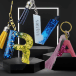 Accesorios únicos en resina: llaveros, aretes, anillos y placas personalizadas con diseño artesanal, color, brillo e identidad propia.